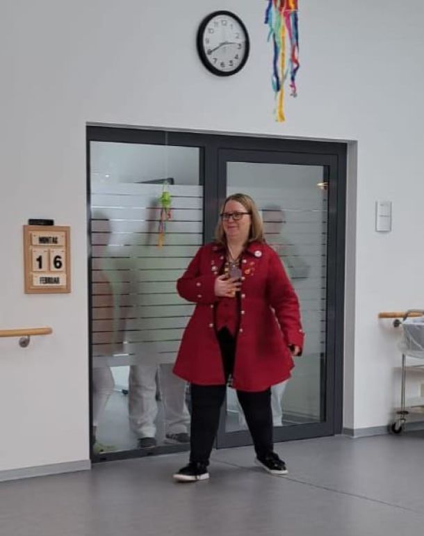 Gestern Nachmittag kam "unsere" Mirjam mal nicht als Verwaltungsfachkraft sondern als Präsidentin der @fage_rot_weiss_schirnding mit dem Prinzenpaar, den Tanz-Mariechen und der Garde zu uns🥳👯♀️.