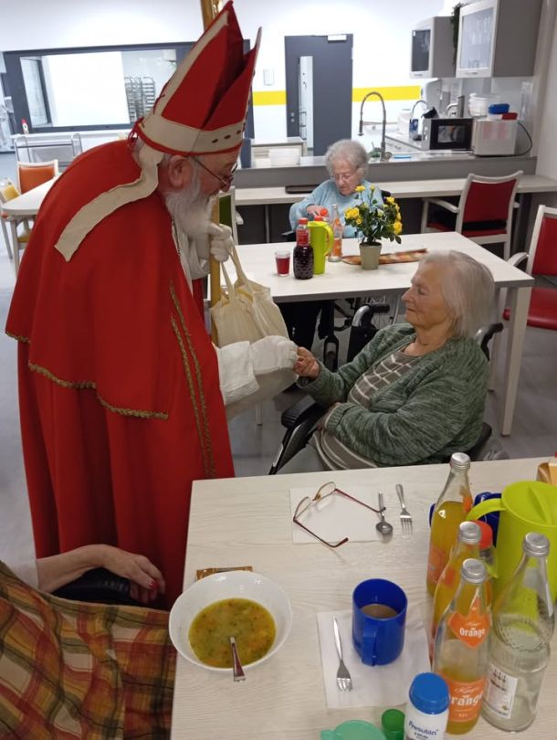 unsere Bewohnerinnen und Bewohner müssen im vergangenen Jahr wirklich ganz besonders brav gewesen sein, denn heute war der Nikolaus noch einmal da - diesmal sogar mit 2 seiner Engel und hat jeder Bewohnerin und jedem Bewohner ein kleines Geschenk gebracht über welches sie sich sehr gefreut haben.