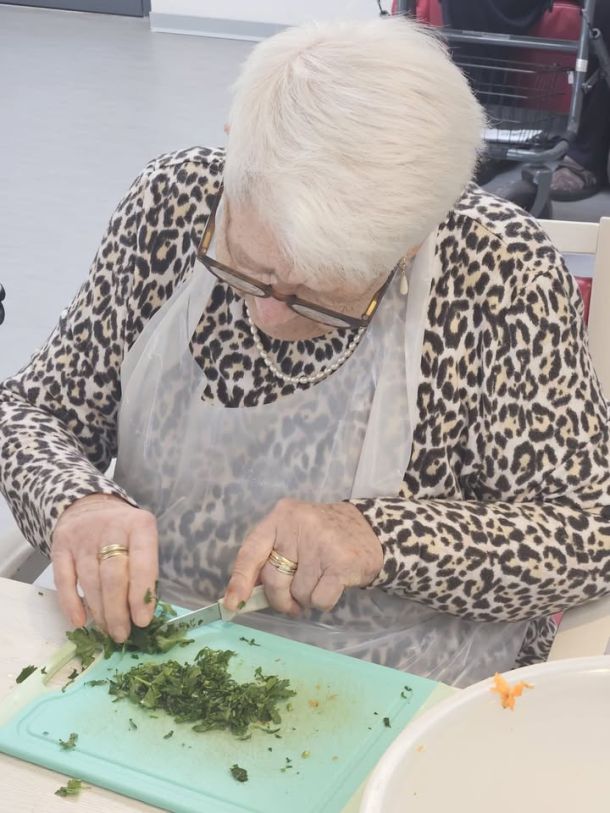 unsere Damen sind einfach super - heute haben sie für Lauch-Käse-Suppe mit Hackfleisch geschält, geschnippelt, gerührt, gekocht und zusammen mit der Küchenfee Pancakes gebacken und mit Waldbeerenmus verziert damit es allen gut geht und auch schmeckt.