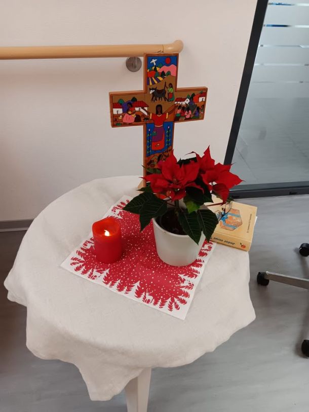 einen wunderbaren WeihnachtsGottesdienst schenkte gestern Frau Pfarrerin Probst - unterstützt wurde sie von unserer Elke Schmidt mit Familie und Dagmar Klier mit Ehemann und ihren Instrumenten - unseren Bewohnerinnen und Bewohnern.