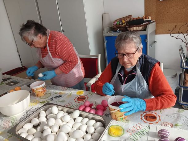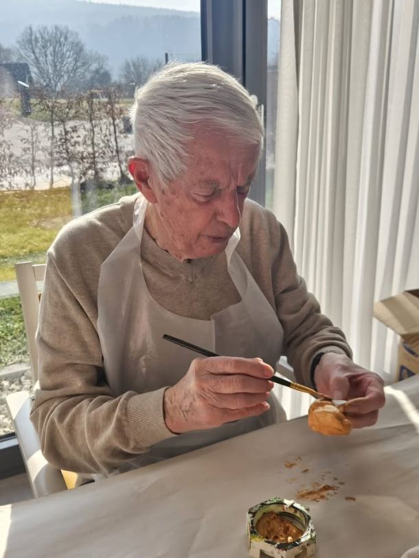 für Osterndekoration🐰🧵🍃 sorgen, körperliche Fitness 🦵erhalten und zusammen mit den wunderbaren Praktikantinnen der Montessori Schule hatte die Betreuung für unsere Lieben Handbäder, Handmassagen und auch Nagellack💅 als Wellnessbehandlng🤗 im Angebot.