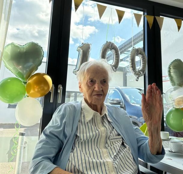 🥳🍾🥂Fit wie ein Turnschuh mit 100 Jahren - das ist unsere Waltraud heute; und so feiert sie auch wie "der Lump am Stecken" mit Angehörigen, Freundinnen im Seniorenhaus und den Menschen die täglich für sie da sind🥰